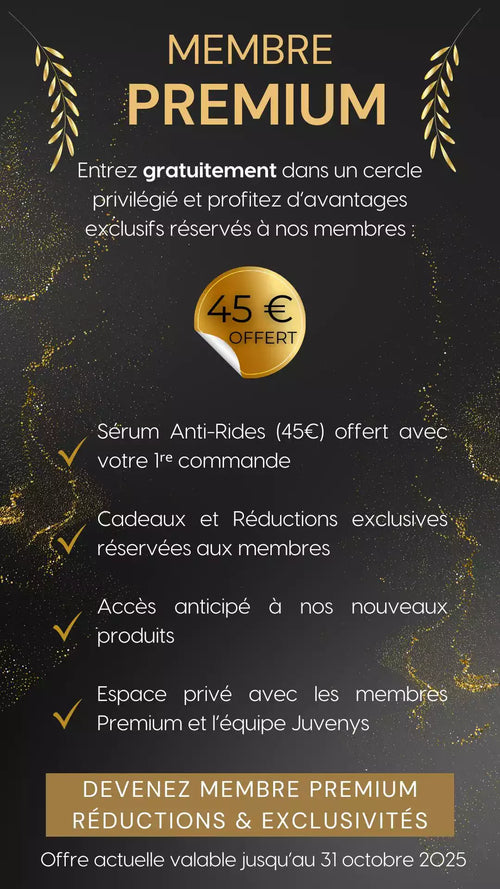 Pour bénéficier du Sérum Anti-Rides offert, ajoutez simplement le Sérum à votre panier puis collez le code envoyé sur votre adresse email dans la case réduction du panier lors de votre 1ʳᵉ commande passée. L'offre prendra fin le 31 Octobre 2025.